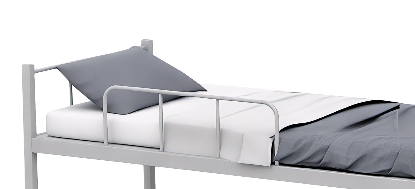 Safety railings run along the top bunk to prevent accidental slips during sleep. The rails are firmly fixed, giving users confidence and offering hostel managers added peace of mind about guest safety.