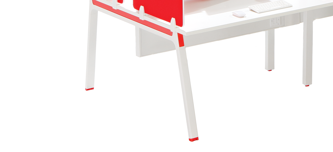 The workstation features a robust understructure with beams and cross tubes, reinforced by aluminium die-cast connectors for strength and durability. Finished with a 60-micron powder coat for scratch resistance, it is available in multiple colors to match modern workspace aesthetics.