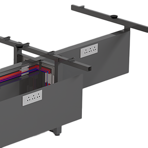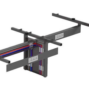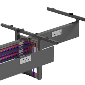 Equipped with flip-up access points and wire entry covers, cables can be easily routed from the floor to the surface. This system ensures smooth connectivity while maintaining a streamlined appearance.