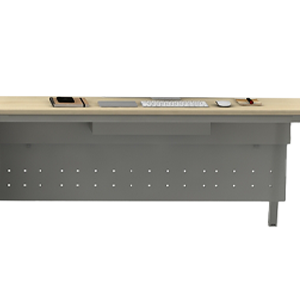 The workstation includes sleek modesty panels that add both structure and visual refinement. Available in metal or prelam board, they provide a clean, professional finish while enhancing privacy.