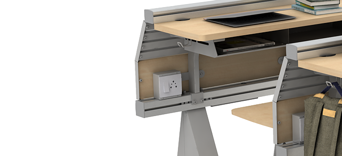 Equipped with a smartly positioned power socket, the system keeps devices charged and ready for use throughout the day. It supports digital learning seamlessly, ensuring laptops, tablets, and tools stay powered without disrupting the flow of the classroom.