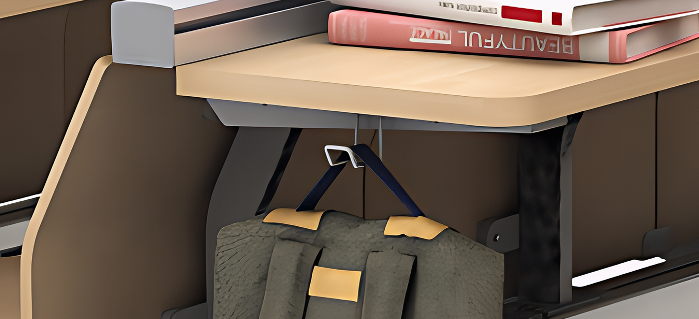The integrated bag hook gives students a dedicated spot to store backpacks and belongings, keeping floors uncluttered and movement effortless. This simple yet essential feature enhances classroom safety, organization, and accessibility.