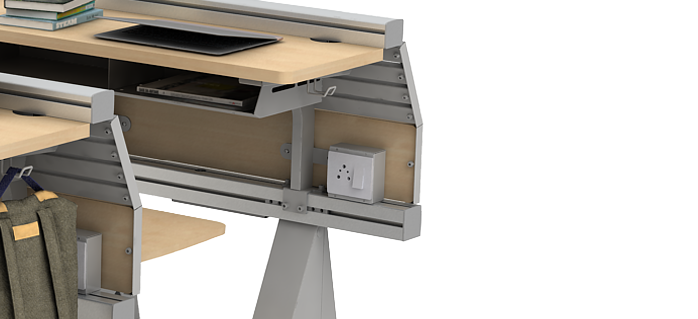 Equipped with a smartly positioned power socket, the system keeps devices charged and ready for use throughout the day. It supports digital learning seamlessly, ensuring laptops, tablets, and tools stay powered without disrupting the flow of the classroom.