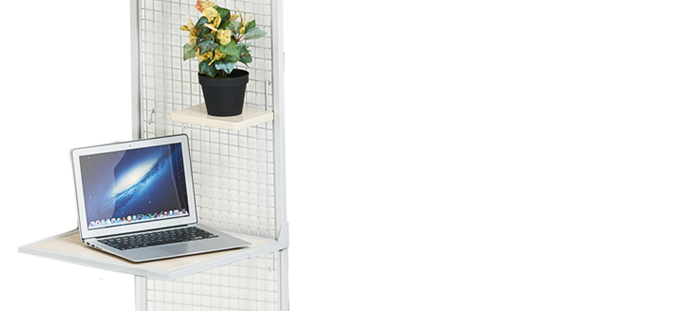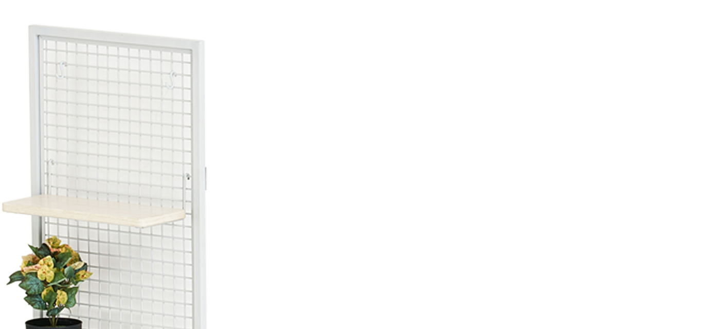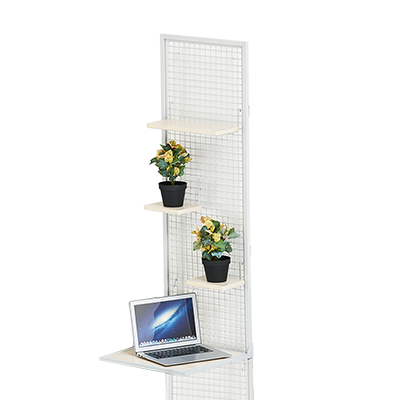 The tall mesh board provides structure for shelves and accessories, allowing users to arrange their essentials in a neat, accessible way.