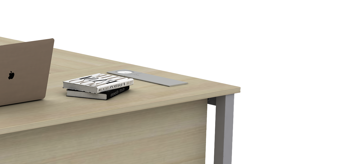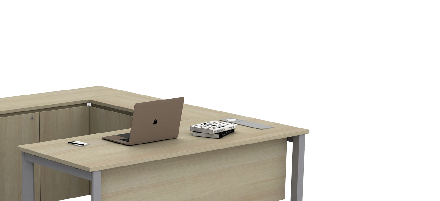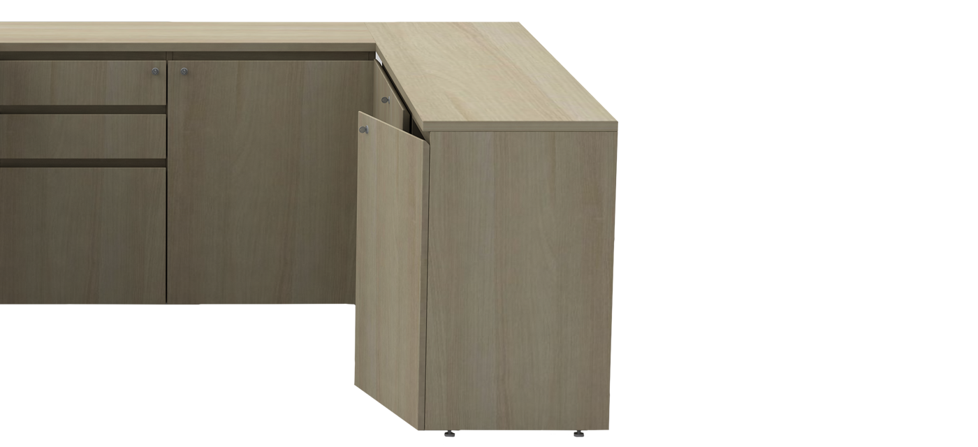 The integrated side storage brings convenience and order to the workspace, offering ample space for files and essentials. Its balanced design keeps everything within reach while maintaining a clean, professional aesthetic.