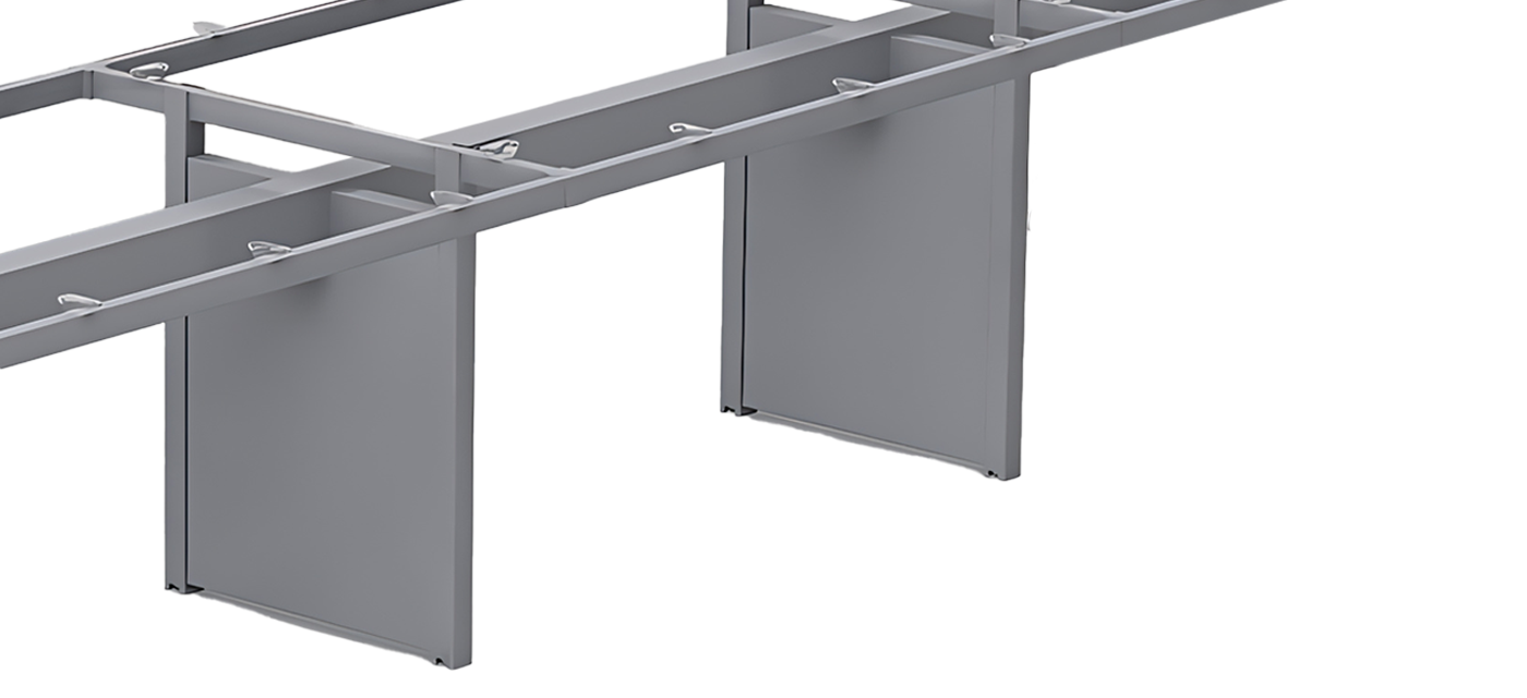 The Cabin table features a robust understructure with beams and cross tubes, reinforced by aluminium die-cast connectors for strength and durability. Finished with a 60-micron powder coat for scratch resistance, it is available in multiple colors to match modern workspace aesthetics.