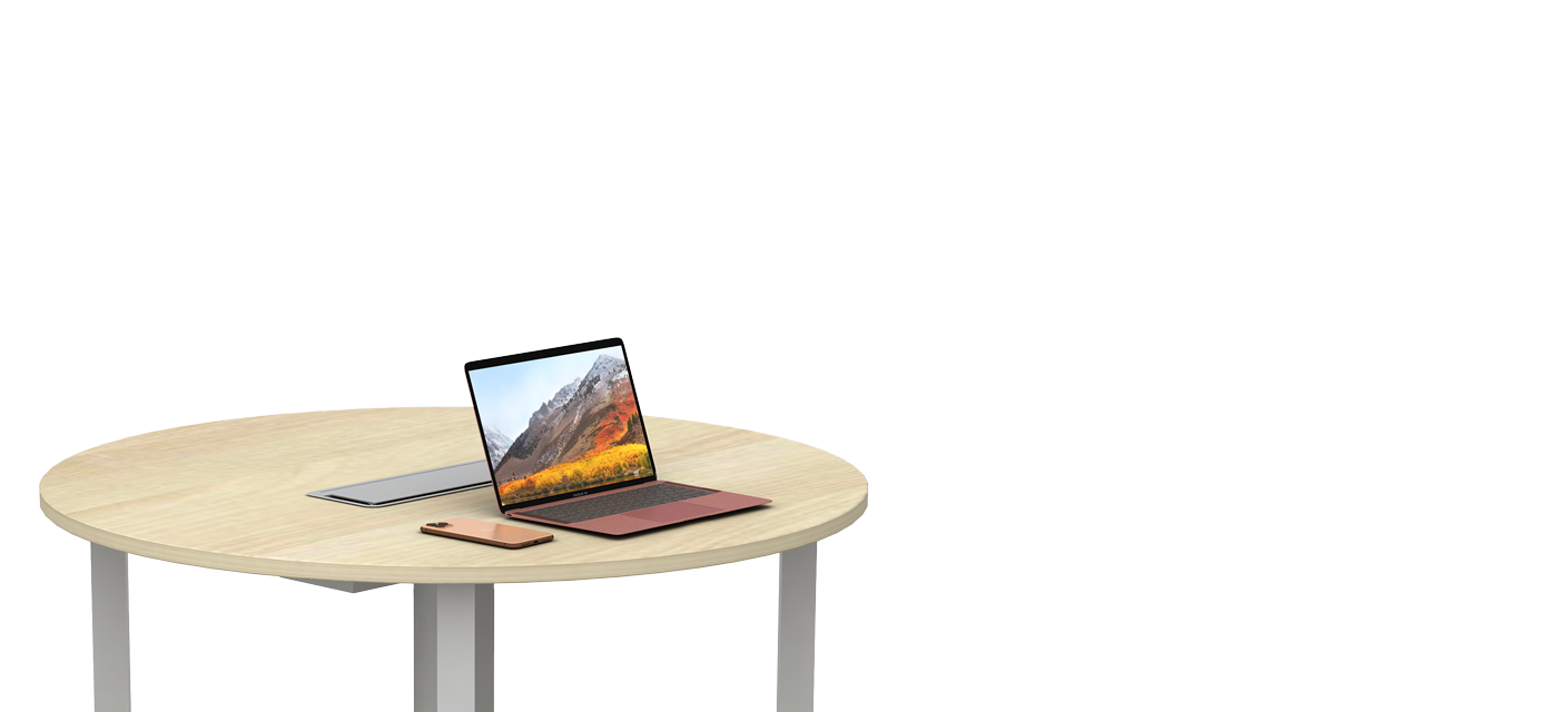 Equipped with flip-up access points and wire entry covers, cables can be easily routed from the floor to the surface. This system ensures smooth connectivity while maintaining a streamlined appearance.