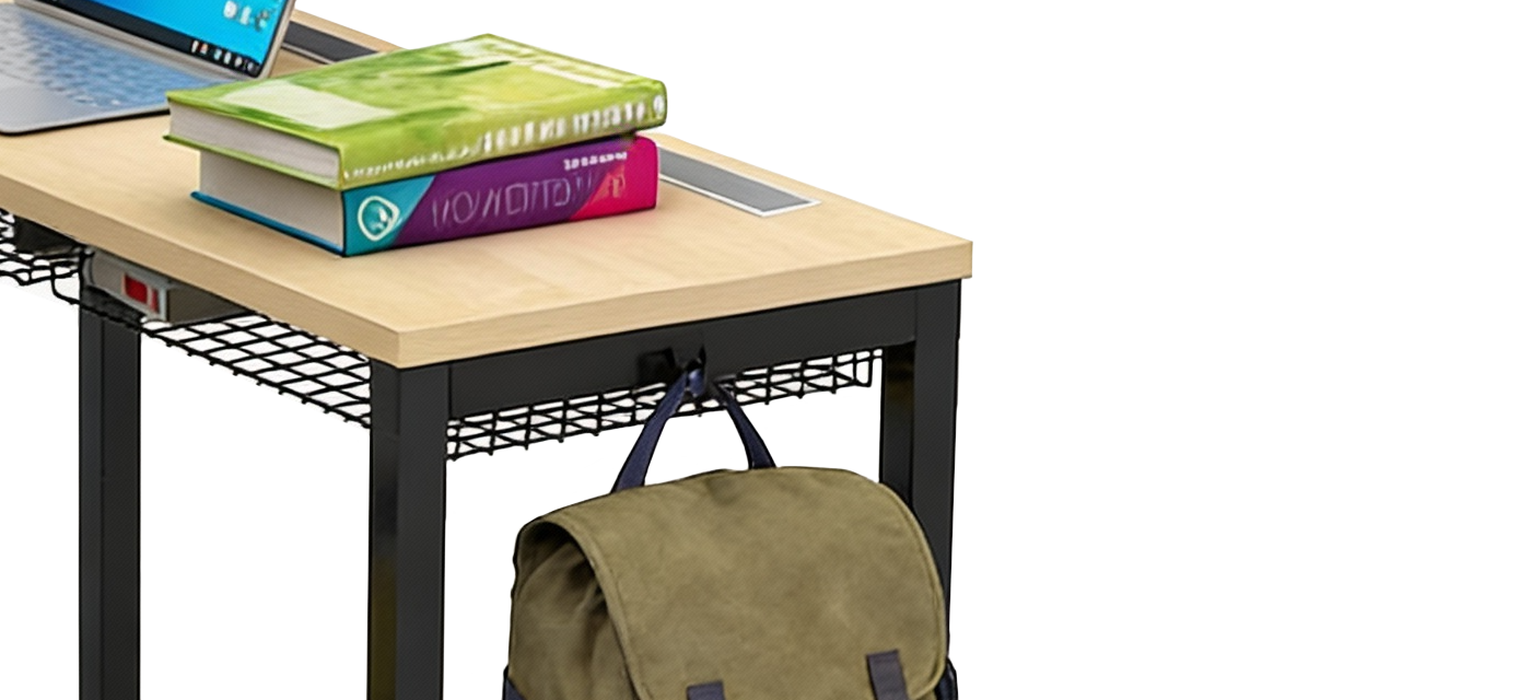 The integrated bag hook gives students a dedicated spot to store backpacks and belongings, keeping floors uncluttered and movement effortless. This simple yet essential feature enhances classroom safety, organization, and accessibility.