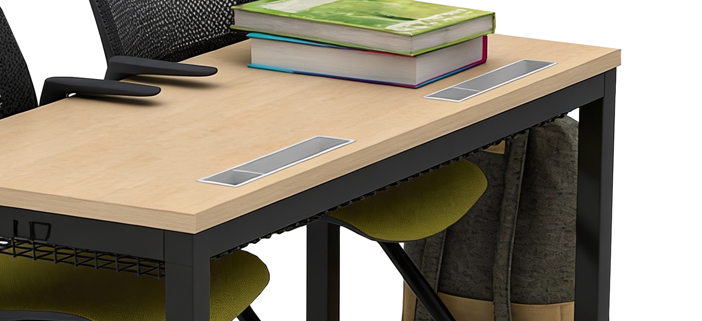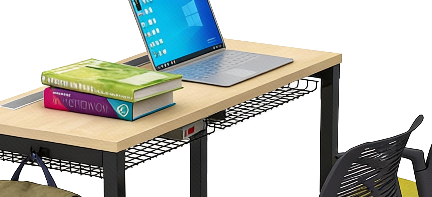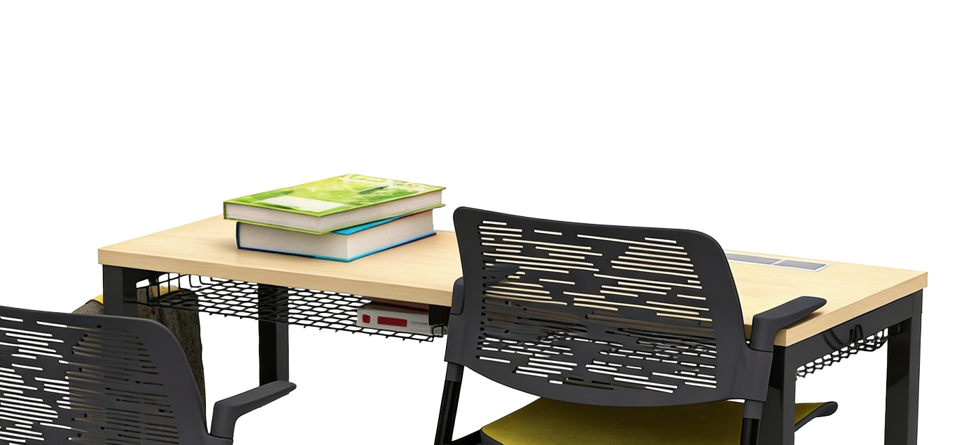 The integrated bookshelf keeps learning essentials close at hand without interrupting classroom circulation. Positioned within easy reach of students, it provides organized storage for books, devices, and materials—helping maintain clean, clutter-free tabletops.