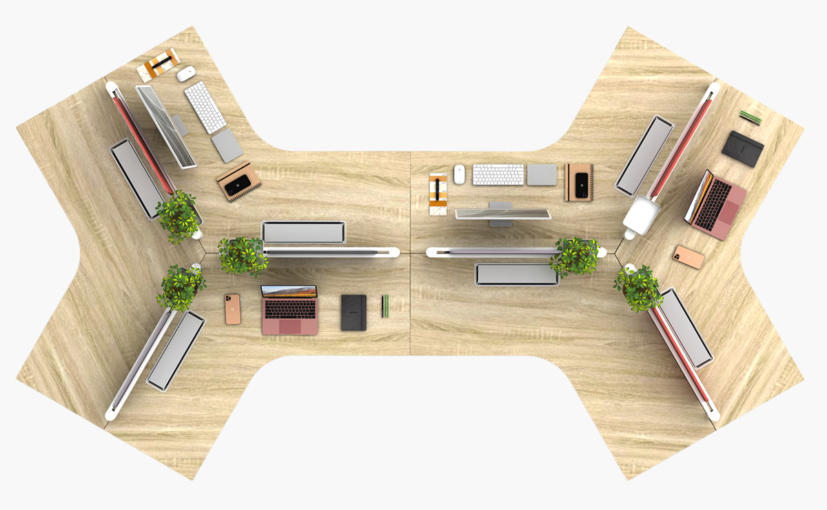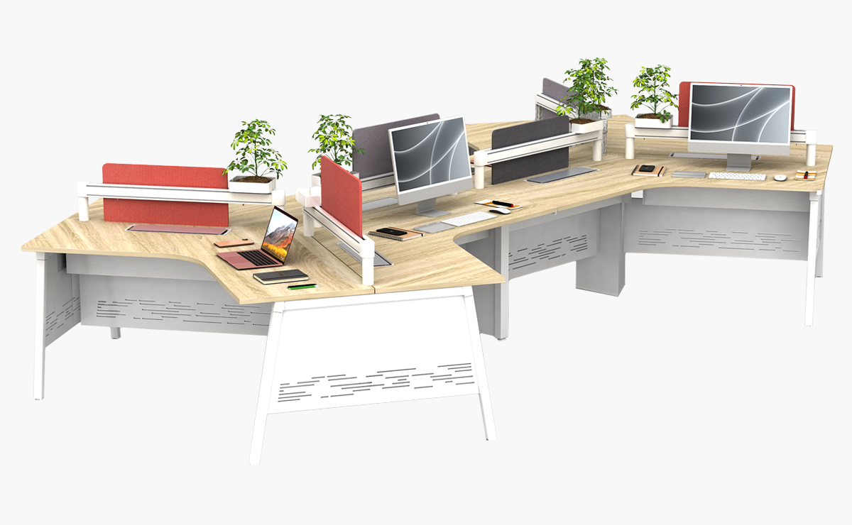 The Switch 120-Degree Workstation brings versatility and modern geometry to the workplace.
