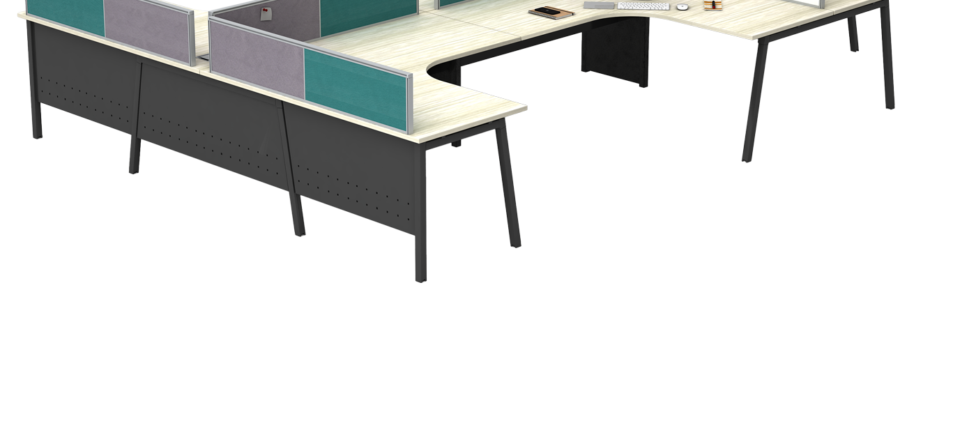 The workstation includes sleek modesty panels that add both structure and visual refinement. Available in metal or prelam board, they provide a clean, professional finish while enhancing privacy.