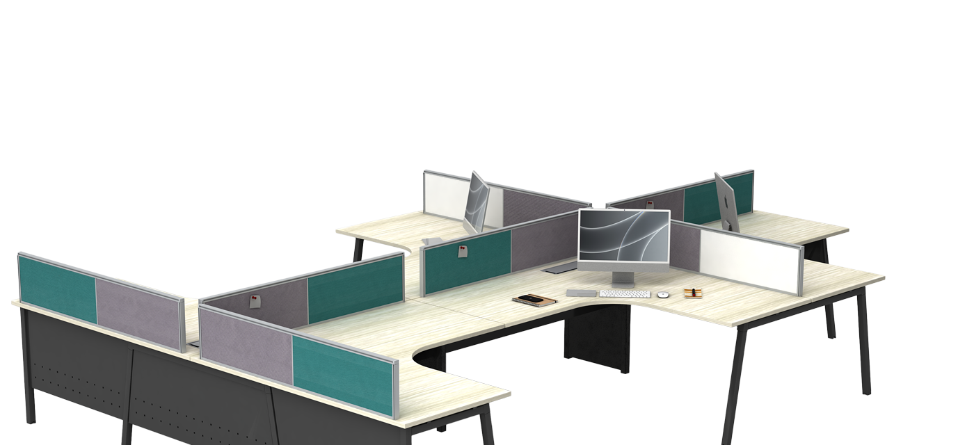 The workstation features a robust understructure with beams and cross tubes, reinforced by aluminium die-cast connectors for strength and durability. Finished with a 60-micron powder coat for scratch resistance, it is available in multiple colors to match modern workspace aesthetics.