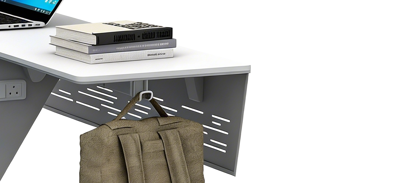 The integrated bag hook gives students a dedicated spot to store backpacks and belongings, keeping floors uncluttered and movement effortless. This simple yet essential feature enhances classroom safety, organization, and accessibility.
